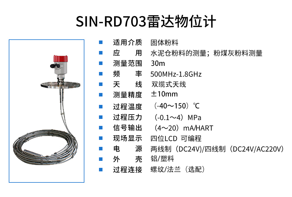 當前位置:首頁 > 雷達液位計 > 聯(lián)測_SIN-RD703雷達料位計_適用于水泥倉粉料_